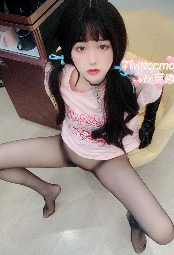 福利姬小青茗 粉色T恤黑丝福利图