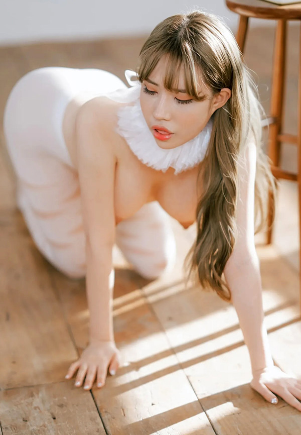 白美嫩模E杯奶茶全裸捂胸美乳大尺度写真