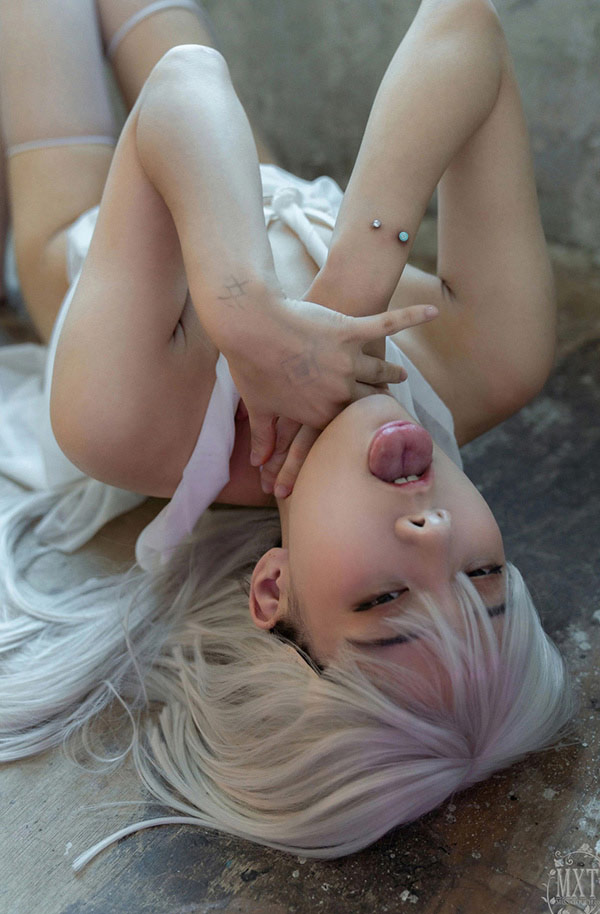 白发飘飘美女Yamu居家透视吊带受囚记2