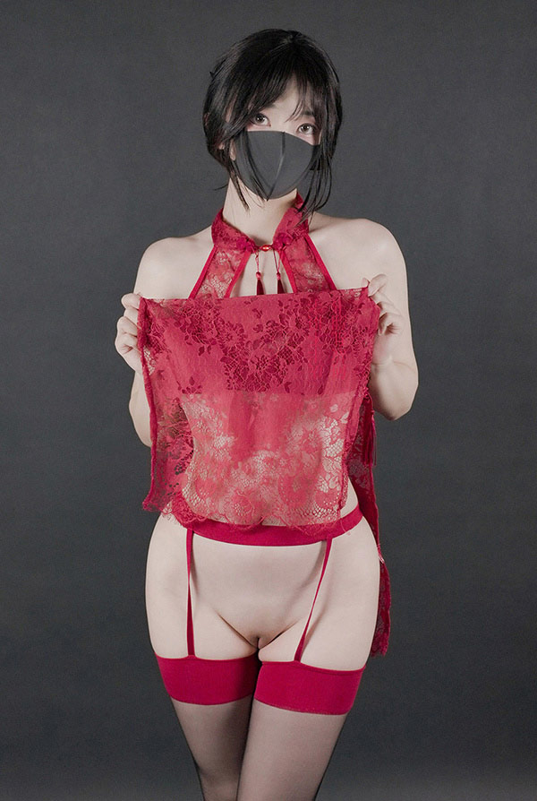 极品HongKong Doll玩偶姐姐 火红露肩旗袍