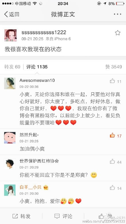 郑爽的粉丝洗白:“胡彦斌和郑爽曾经被朋友介绍过相亲,胡彦斌来电了,郑爽却没什么感觉,后来也没什么,只是胡彦斌一直穷追不舍,女人都经不起锲而不舍的追求的,她有什么错?而且你们现在都没证据证明郑爽和张翰到底是谁劈腿,瞎bb什么,动不动就圣母白莲花什么的,注意点好吗?”但是这怎么解释郑爽的百度贴吧小号在2013年就唯独只关注胡彦斌呢?那个时候,郑爽和张翰正在热恋吧?