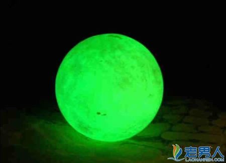 在手电筒几秒的照射下,夜间就能明显看见绿色的光源,并可以持续很长时间。据彭先生说,要是在太阳底下吸收几分钟光热,可以持续发光三天三夜,一共有三层颜色的光源,一层是绿色的,中间层是淡蓝色,最里面是白色,在黑夜里格外醒目耀眼,如同一大颗珠光宝气的翡翠,照亮整个房间。