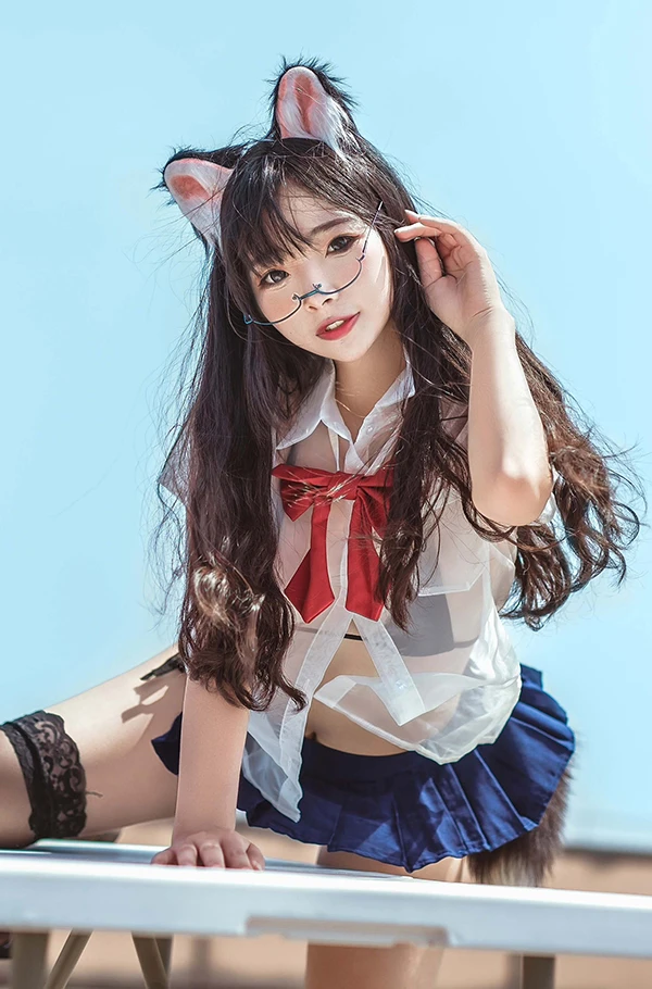 高颜值coser小姐姐@玉汇 豹纹牛仔+天台猫猫