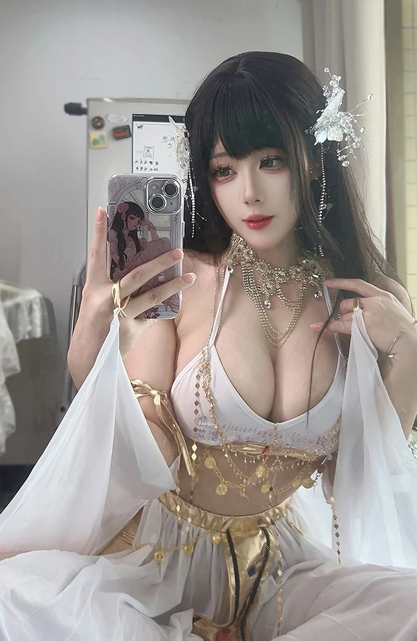 白嫩丰满美女孙乐乐居家白色吊带睡衣