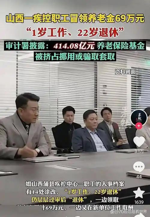 原标题:审计署披露四百亿养老金被挪用骗取,有人1岁工作22岁退休