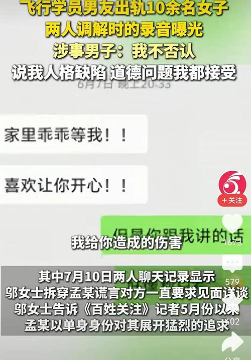 8月15日,上海的邬女士通过49页PPT举报金鹏航空飞行学员孟某,与其恋爱期间和10余名女子保持不正当关系。