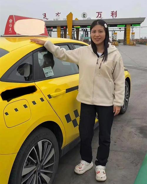 这次在路上,他们的车回头率很高。在服务区,还有其他车主过来看出租车,得知她是从重庆打出租车去内蒙古的时候也不敢相信。因为出租车是电车,他们也有续航焦虑,特别是内蒙古现在天气冷,电量消耗比较快。