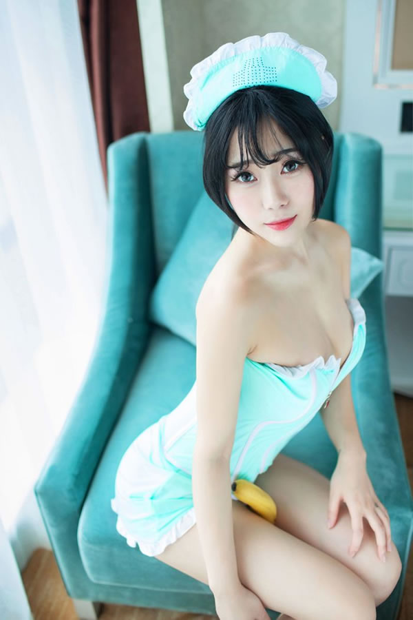 性感护士装大眼妹MM吃香蕉诱惑写真套图