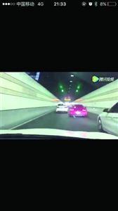 保时捷和英菲尼迪在并不宽阔的军工路隧道里也在高速追逐/视屏截图