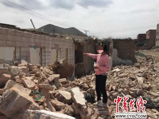 (图片说明::蓉蓉在古浪县城拆迁工地指认现场。)