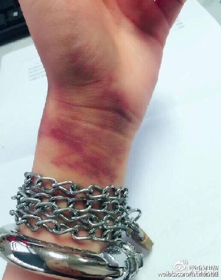 网传微博截图显示,照片上的女子全身伤痕累累,被男子用绳索捆绑或用金属锁具锁住四肢,身体敏感部位被打成青紫色。在微博中,女子对自己的“伤势”并不在意,与男子疑似互相言语挑逗。