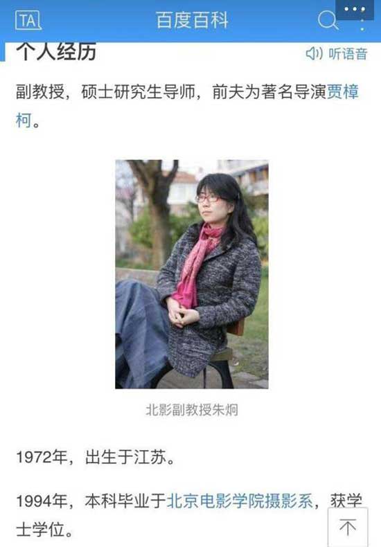 随后,有网友扒出当事人班主任朱炯的百度百科词条截图,显示其前夫为知名导演贾樟柯。也就是说,被指性侵的朱炯之父朱正明,真实身份竟是贾樟柯的前岳父。而在今天11点左右北京电影学院官方微博曾辟谣表示,该学生自中学起就有抑郁症,大学时曾因抑郁症自杀洗胃,不排除有其他相关症状,本次经院系两级调查,不存在该生所说情况,特此辟谣。不过,随后该微博内容被删除掉。