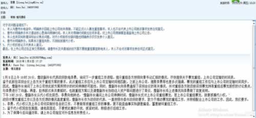 2015年1月时任内蒙发展副董事长李勇与詹政助理的邮件内容显示:詹政在与李勇的电话通话当中表示,如果重组方案中没有其利益安排,不排