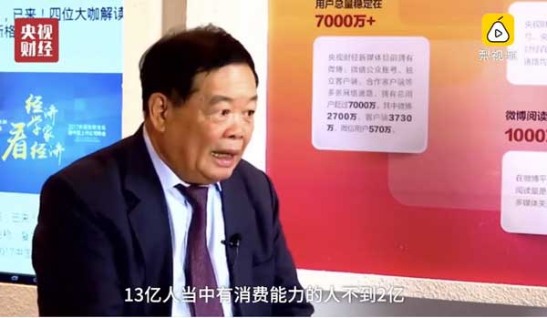 12月11日,福耀集团董事长曹德旺表示,马云说中国有13亿人的市场,但是有消费能力的只有2亿左右,有的只是人口,没有消费能力。