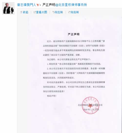 针对此次造谣事件,本公司及曾志伟先生已委请北京星权律师事务所依法取证、严肃处理,针对怠于终。止侵权行为者,本公司及曾志伟先生将坚决依法追责!
