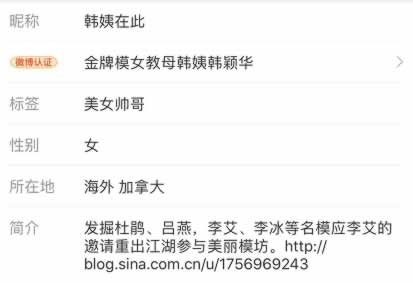 韩颖华担任过美国Ford Models模特经纪公司亚太区总裁,旗下有超模“黑珍珠”Naomi Cambell,第一男模赵磊也是这家公司的。她还自称曾发掘杜鹃、吕燕,李艾、李冰等名模,在中国模特界有着“金牌模女教母”的美誉。