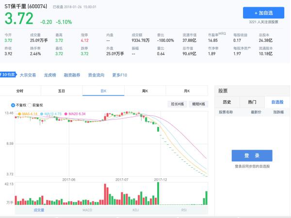 1月29日,ST保千里迎来了第22个跌停板,报收于3.53元/股。