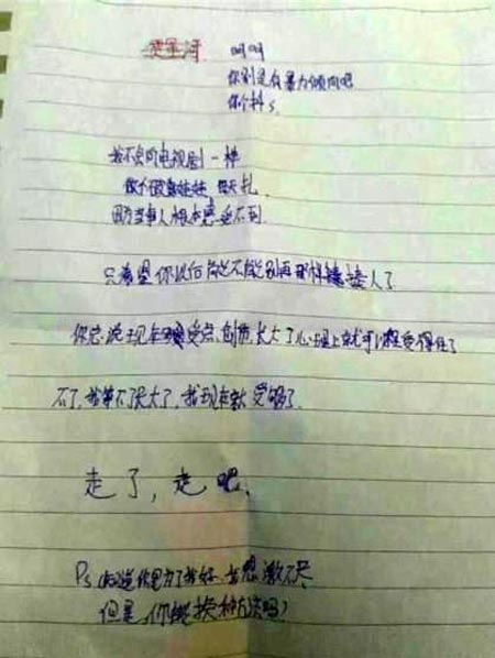 大同一中坠楼女生给班主任的遗书