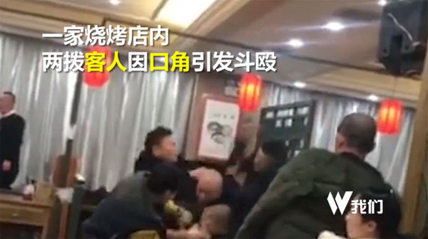 原标题:烧烤店内两拨客人斗殴 酒瓶餐具灭火器满天飞