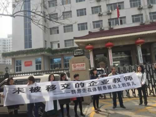 3月26日,据知名博主@秦岭二月爆料称:西安市西光中学部份教师区委门口拉横幅维权。博文称: 2004年就调入西安市西光中学,但因单位体制改变,这些人末被移交到社会学校,他们的编制去哪了?涉及十几名教师贴身利益的迟迟不能解决,被逼无奈在新城区区委门口拉横幅维权。
