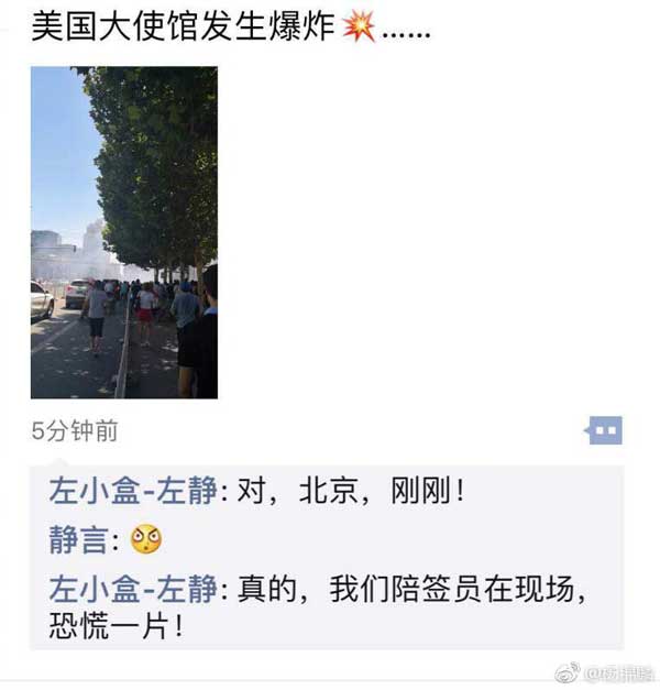 2018年7月26日,美国大使馆发生了爆炸,巨大的声音,震耳欲聋,现在周边已经拉上了警戒线,具体事故原因还在调查,有没有伤亡也不清楚具体原因。