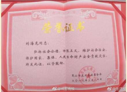 【遭反杀宝马男曾获见义勇为证书:因举报有人贩毒】8月27日,昆山发生一起持刀砍人案件。同时,网上爆出首先持刀的纹身男子即被害人刘某某有犯罪前科,还在今年荣获见义勇为证书一事,引发网友质疑。对此,8月29日,昆山市见义勇为基金会发布了情况说明:刘某某曾举报有人贩毒的线索,警方据此抓获毒贩。目前江苏省见义勇为奖励规定“并未明确犯罪前科人员不能申报见义勇为”,对其奖励是按规定执行。(扬子晚报)