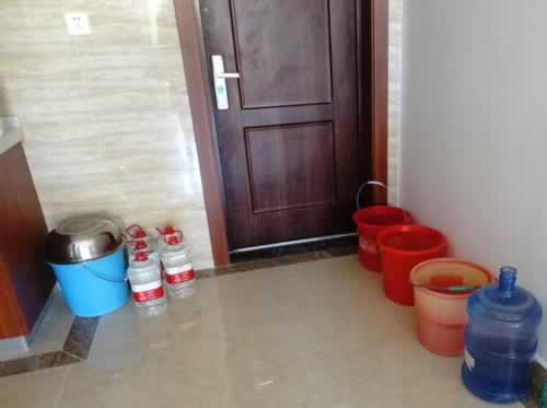 住在高层的业主,只有等早晚两次短暂供电电梯运行时,用上所有的容器抓紧接水。
