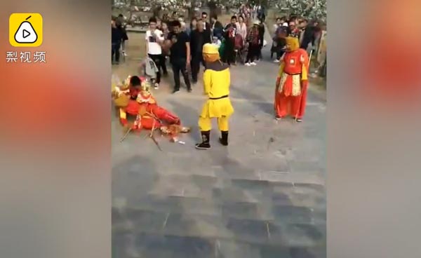 实拍安徽砀山一景区3孙悟空互殴还有1个淡定围观现场视频