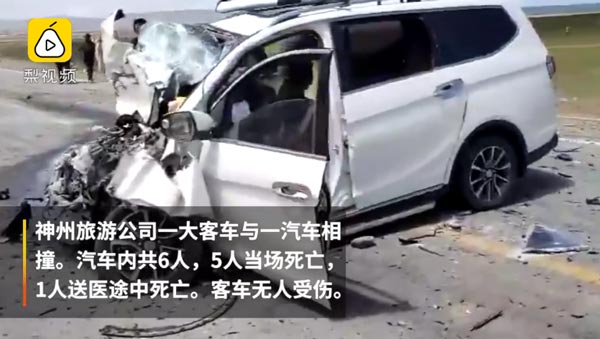 实拍青海一面包车与大巴车相撞致6人遇难现场视频
