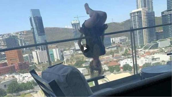 一名为Alexa Terrazas的23岁墨西哥女大学生上周末在阳台栏杆上做瑜伽动作时,不慎从6楼坠落摔断110块骨头,接受了长达11小时的手术,需要很多年才能康复。图片显示她在窗台边,仅用腰撑住整个身体,用双腿保持平衡。