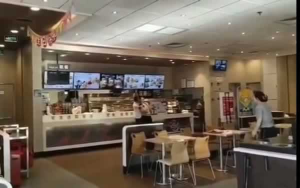 北京密云男子持刀劫持肯德基店员 嫌疑人已被控制一男子在肯德基密云店持刀劫持女员工。受访者提供视频的截图