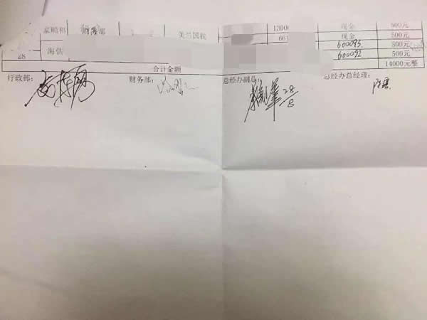 随后,记者短信向其求证,截止发稿其暂未回复;联系疑似签字的财务部经理路女士,其否认送过礼;联系疑似签字的行政部经理赵先生,其表示已辞职。