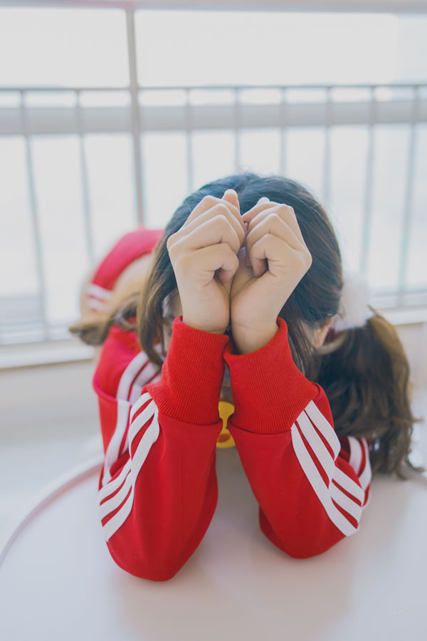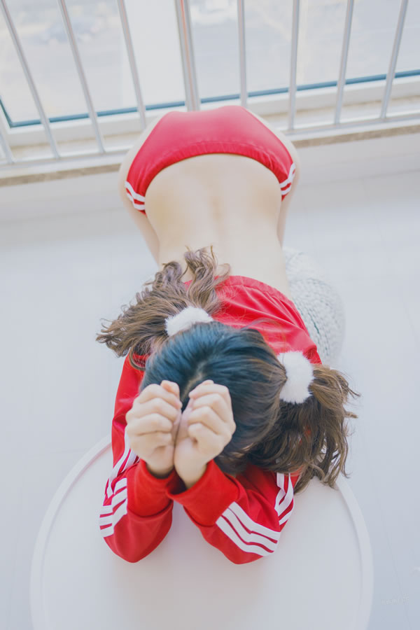 网红少女杏仁红色运动装大尺度套图
