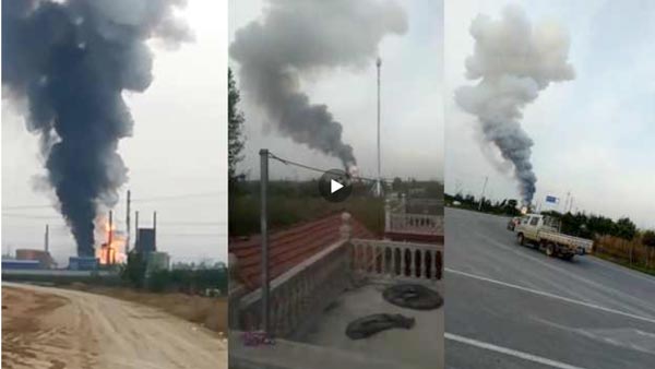 实拍河南辉县县永大化工厂燃爆致1人死亡视频