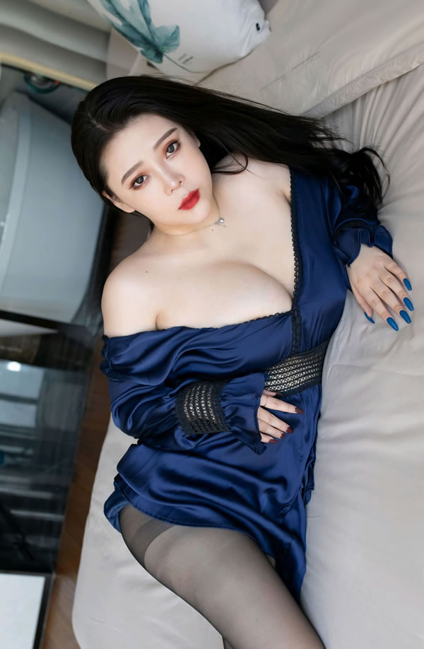 YOUMI尤蜜荟尹菲黑色透视睡衣丝袜美腿极