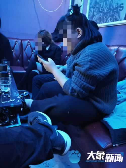 小雪满身酒气站在屋子里,浓浓口红和眼影,根本看不出来是个初中生。见到母亲之后,她失声痛哭,在民警的要求下,小雪和母亲一起来到了小吕乡派出所配合调查。就在小雪做笔录的时候,大象新闻记者在派出所值班室里看到,还有3名女孩和2名男孩挤在一张长条椅上。办案民警透露,这5人都是从英豪KTV里带回来的,其中3名女孩是“公主”,其他2名男孩是服务员,这5人年龄都不大,有的未满18岁。