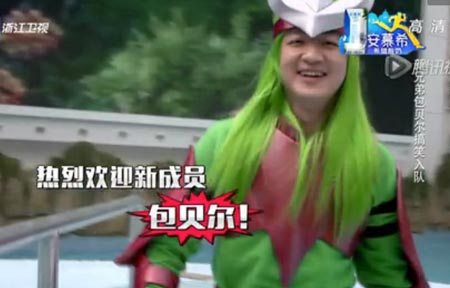2015年奔跑吧兄弟第二季第一期节目将让明星们重回童年,Angelababy、邓超、李晨、陈赫、郑恺、王祖蓝及包贝尔将扮演成圣斗士降临成都,还有范冰冰及韩庚助阵,让第一期看点多多。女神范冰冰在节目中继续展现出霸气一面。 其中奔跑吧兄弟第二季新成员包贝尔搞笑出场被叫尔贝包。包贝尔与王祖蓝相似度达90%,素来在节目中以模仿他人见长的王祖蓝此番终于遇到了强劲对手。包贝尔在不费吹灰之力的情况下,把王祖蓝扮得维妙维肖,而他与祖蓝的五官更恍如倒模一样,相似度达90%!其后包贝尔在微博放上一张与祖蓝的合照,更留言说:“双胞胎!”视蓝见状后,与对方惺惺相惜,并留言说:“终于找到可以互相模仿的人了。”!