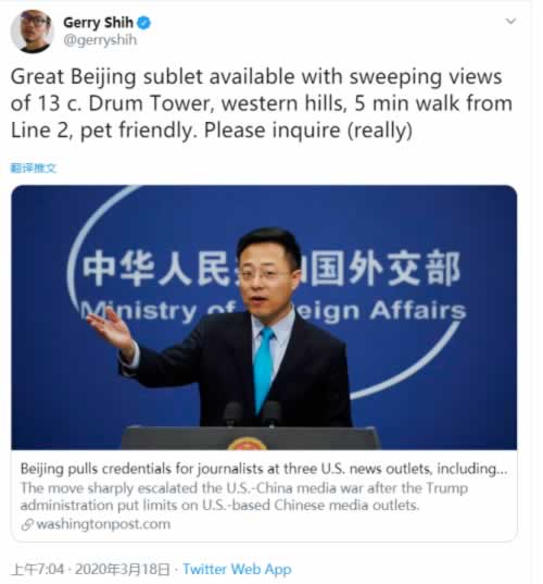 原标题:华盛顿邮报驻北京记者 默默准备转租