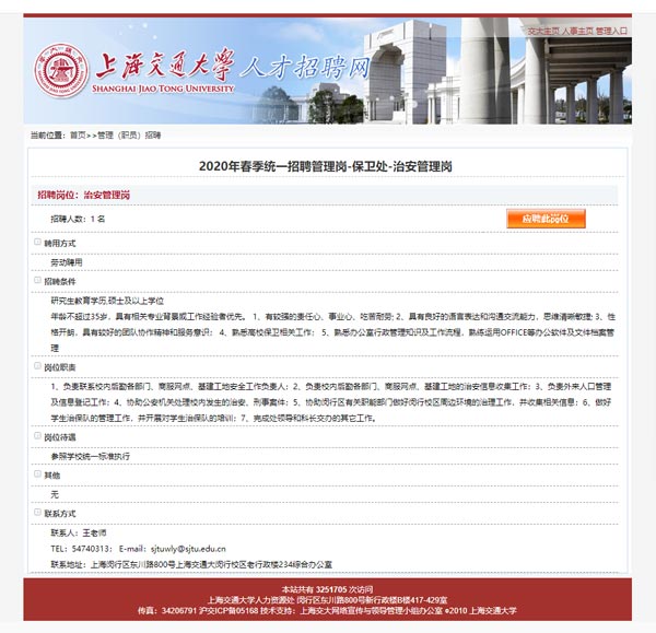 治安管理岗人员要求硕士学位,上海交通大学的一则招聘信息引发热议。