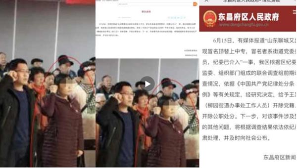 16日,山东聊城东昌府区新闻办在东昌府区人民政府网站发布情况通报称,6月15日,有媒体报道“山东聊城又出现冒名顶替上中专,冒名者系街道党委委员,纪委已介入”一事,我区根据区纪委监委、组织部门组成的联合调查组前期调查情况,依据《中国共产党纪律处分条例》等有关规定,经研究决定,给予王某(柳园街道办事处工作人员)开除党籍、开除公职处分。