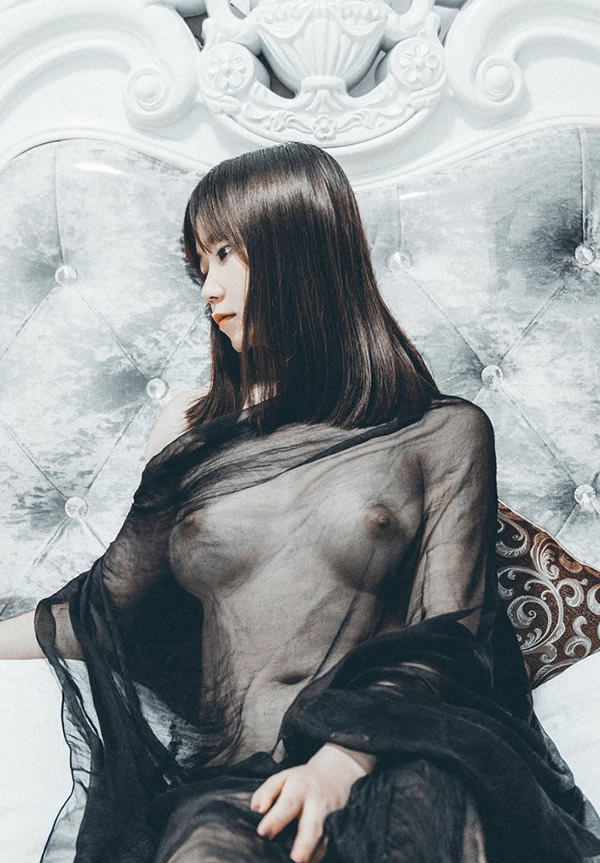青豆客嫩模周依透视紧身衣+白色蕾丝缕空
