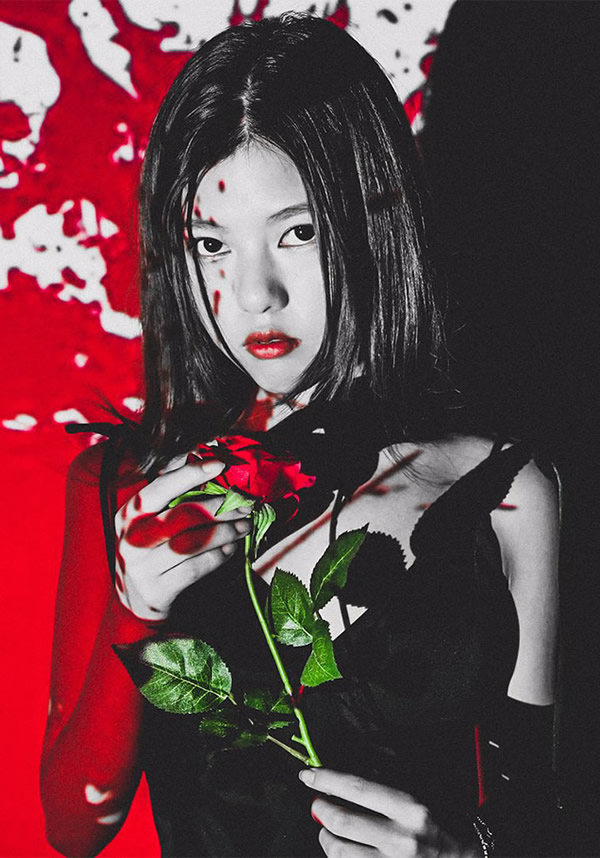 朝鲜族白皙美女高冷猫步狐媚开胸装漏脐翘