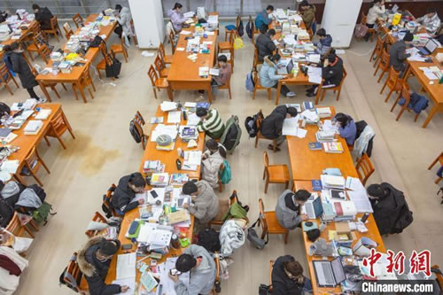 资料图:南昌大学图书馆自习室内,考生正在紧张复习。刘力鑫 摄