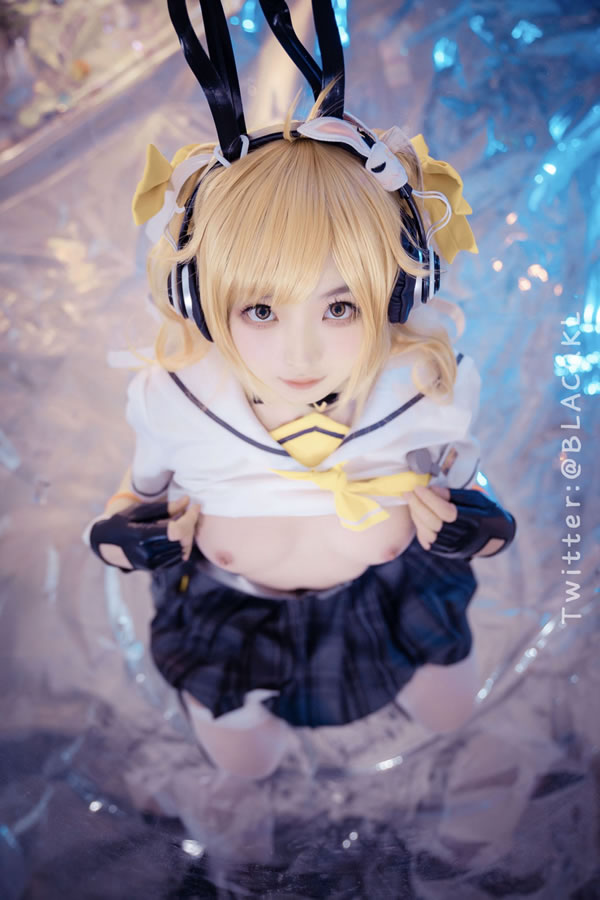 过期米线线喵-黑色皮衣条纹黑丝+网袜