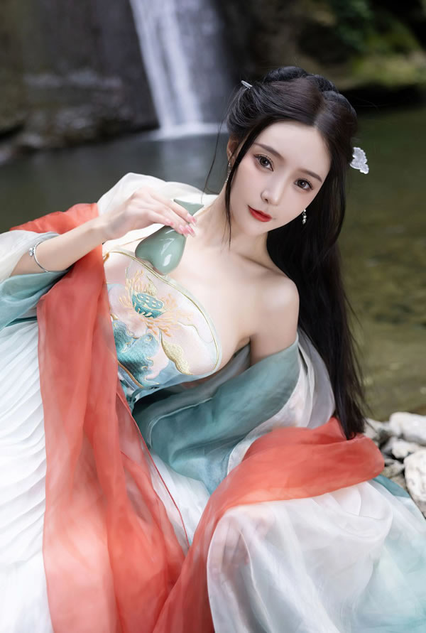 美貌汉服女子王馨瑶自斟自饮情幽幽